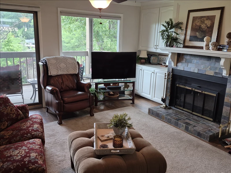 SOLD FOR FULL PRICE. Carefree living at this large move-in ready, end-unit condo. Conveniently located beside the back nine of the renovated Waynesville Inn & Golf Club! Tremendous golf course and mountain views all year long. This condo comes w/many updates and the furniture, furnishings, electronics, and quality appliances are all included. (minus a few personal items) Great remodeled kitchen overlooks the living/dining area w/fireplace, and there's updated flooring throughout. The main balcony to enjoy the views is just beyond the great room. The balcony is also accessible from the primary bedroom suite, which offers a beautifully remodeled bathroom. There's another bedroom on the main level, as well as the laundry area. Downstairs has a large family room w/fireplace and another bedroom, both of which exit to a downstairs patio area that also offers those same amazing views. Pool & Clubhouse on site. Don't let this one get away if you're looking for a 3 bedroom condo in Waynesville. Home Warranty Incl.